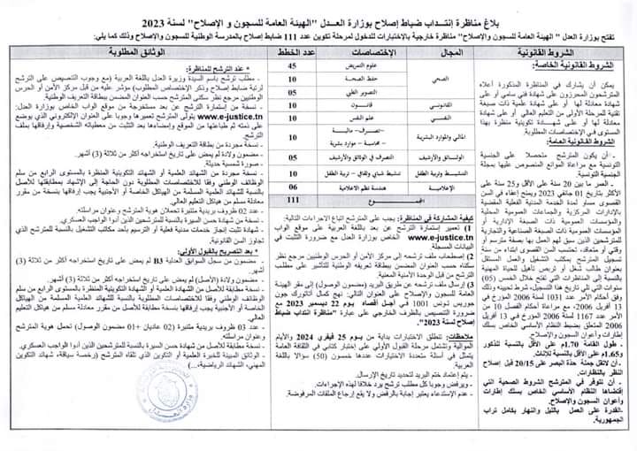 فتح مناظرة خارجية بالاختبارات لانتداب ضباط إصلاح بوزارة العدل " الهيئة العامة للسجون والإصلاح " لسنة 2023
