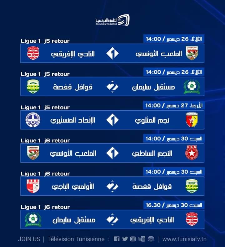 برنامج البث التلفزي المباشر لمباريات الرابطة المحترفة الأولى لكرة القدم هذا الأسبوع.