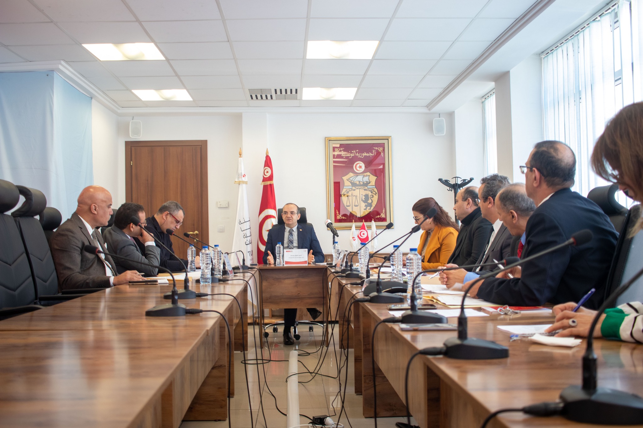 أشرف فاروق بوعسكر، رئيس الهيئـة العليــــــــا المستقلة للانتخابات يوم 4 جانفي 2024 على جلســــــــــة عمل بحضور نائب رئيس الهيئـــــــــة محمد نوفل الفريخة وأعضاء مجلس الهيئـــــــة نجـــــــلاء عبروقـــي ومحمــــــود الواعر والسيد أيمن بوغطاس إضافة إلى رضا الميساوي المدير التنفيذي وممثلين عن الديوان والإدارة المركزية للشؤون القانونية ومراقبة الحملـة بالهيئة وذلك لإعداد القرارات الترتيبية التالية:
