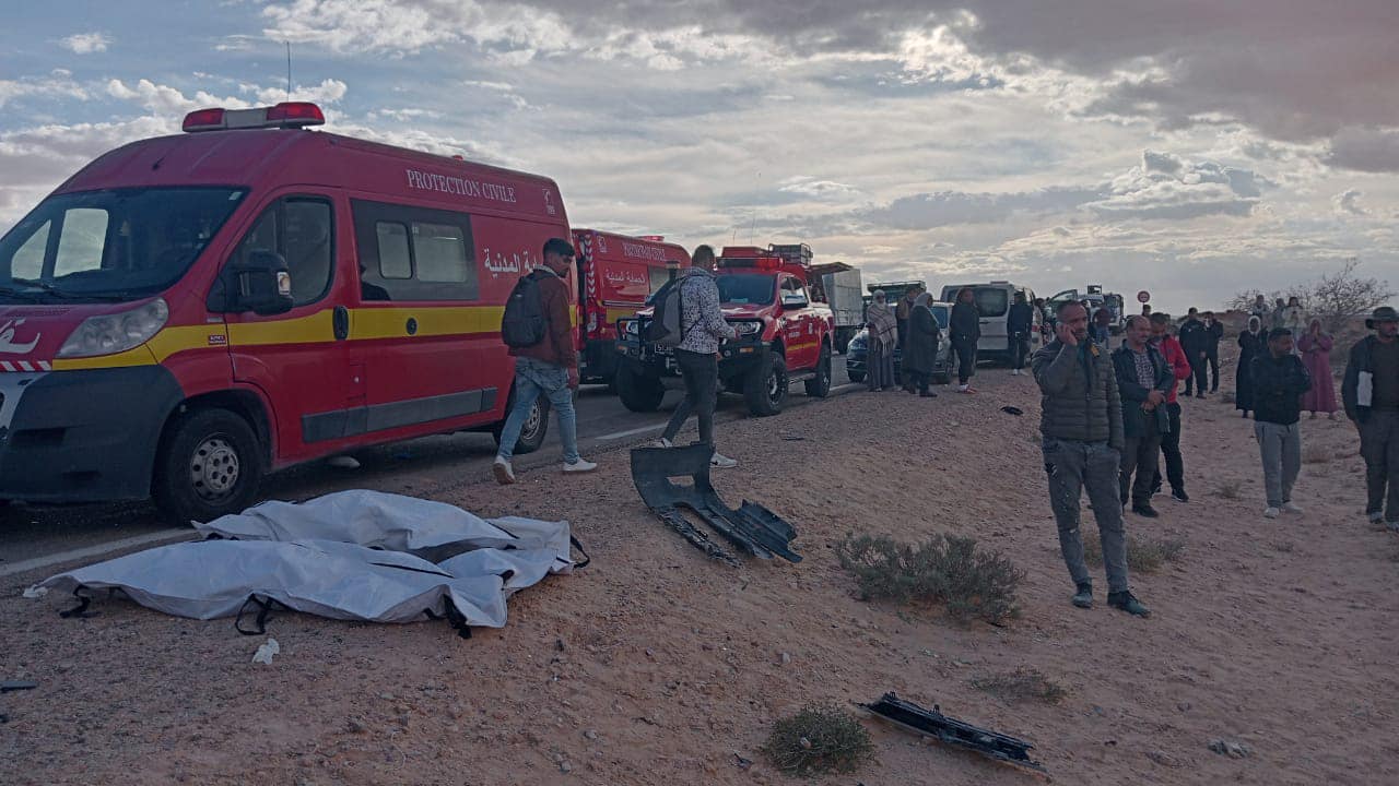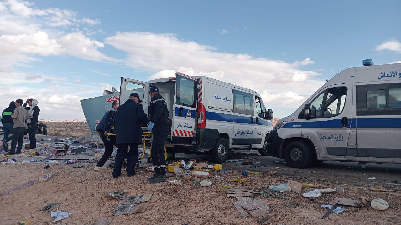 حيث قامت الفرق المذكورة بتخليص 8 جثث (7 جثث من سيارة الأجرة لواج و جثة من الشاحنة الثقيلة) كما تم إسعاف ونقل عدد 02 مصاب إلى المستشفى الجهوي بڤبلي كما تم نقل عدد 02 مصاب من طرف الصحة العمومية.