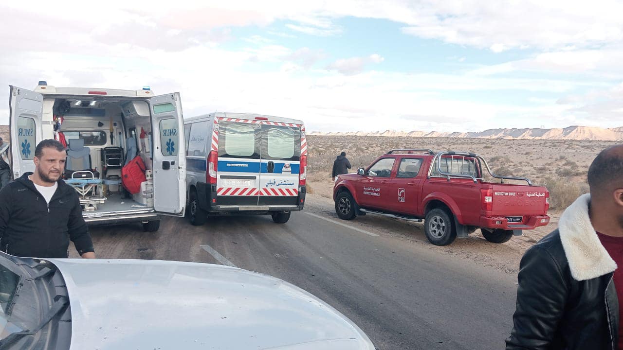 تولت فرق الإسعاف والنجدة التابعة للادارة الجهوية للحماية المدنية بڤبلي التدخل على حادث المرور يتمثل في إصطدام شاحنة ثقيلة بسيارة أجرة لواج بالطريق الوطنية رقم 16 بمنطقة سعيدان بطريق الحامة من معتمدية قبلي الشمالية. تسبب في وفاة 8 أشخاص وإصابة 04 اشخاص بإصابات مختلفة الخطورة.