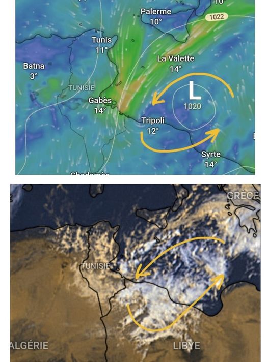 وفقا لأخر الصور التي يظهر القمر الإصطناعي فنلاحظ نهاية التقلبات بعد تنقل مركز المنخفض الجوي L نحو سواحل ليبيا…