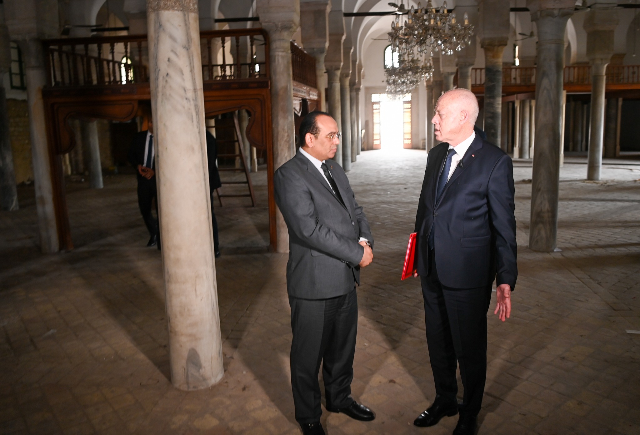وأسدى رئيس الجمهورية تعليماته بترميمه فورا، فهذا المسجد الجامع فضلا عن أنه بيت من بيوت الله الذي أذن سبحانه بأن يُرفع فيه إسمه هو من المعالم الإسلامية لتونس الذي أمر ببناءه مؤسس الدولة الحفصية أبو زكرياء الحفصي وتم الانتهاء من بناءه سنة 633 هجرية الموافق لسنة 1235 ميلادية.