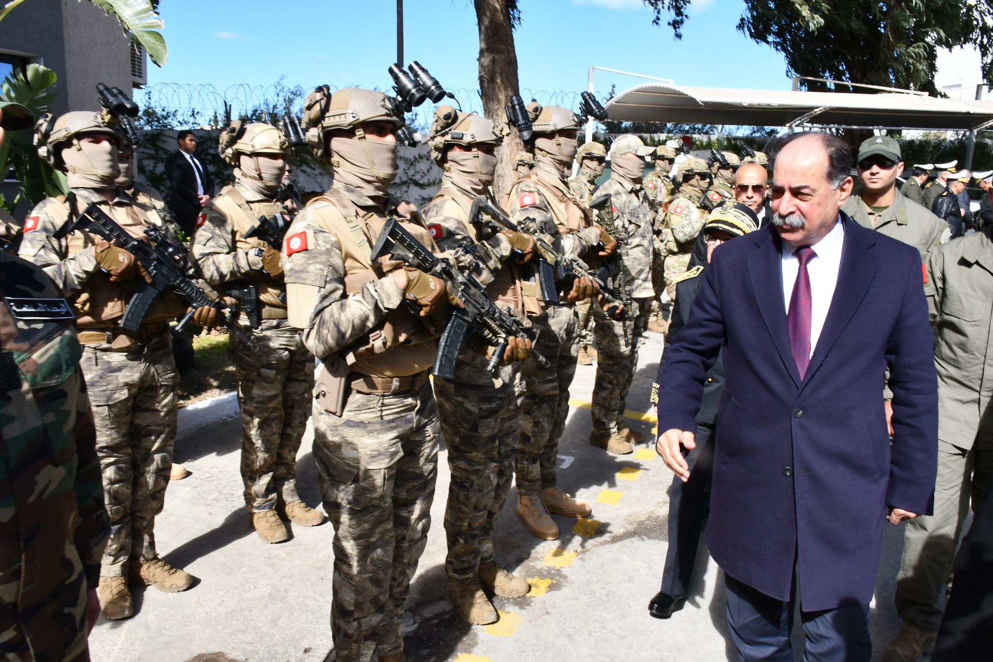 أدّى وزير الدّاخليّة كمال الفقـي اليوم الإثنين 04 مارس 2024 زيارة إلى مقرّ الوحدة المُختصّة للحرس الوطني ببئر بورقبة من ولاية نابل، حيث كان في استقباله والية الجهة والمدير العام آمر الحرس الوطني وثلة من الإطارات العُليا، وقد اطلع الوزير على حُسن سير العمل بها وتفقد مُختلف مصالح وأقسام الوحدة المذكُورة على غرار قاعات التدريس والرّياضة والمُحاكاة، وعاين التجهيزات اللوجستيّة والتكتيكيّة والتكنولوجيّة ومعرضا للصّور التي تُخلدُ ذكرى القضاء على عدد من الإرهابيّين في مُختلف الفترات، كما تنقل كمال الفقـي خلال هذه الزيارة إلى ميدان الرّماية أين تمّ عرض عمليّة بيضاء وتمرين مُحاكاة لعمليّة ميدانيّة قصد التصدّي لمجمُوعة إرهابيّة.