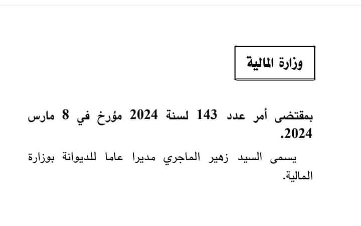 زهير الماجري المدير العام الجديد للديوانة التونسية هو قاض من الرتبة الثالثة كان يشغل خطة وكيل الجهموريه لدى المحكمة الابتدائية ببنزرت وقبلها بسليانة و هو رجل دولة جدير بالمهام.