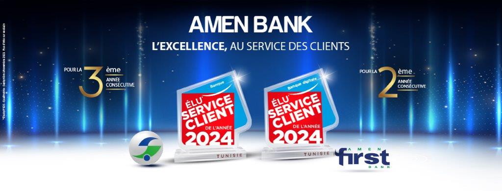 Pour la troisième année consécutive, AMEN BANK a remporté le prestigieux prix « Elu Service Client de l’Année 2024 »*, un concours renommé pour son sérieux et son label international, organisé par les partenaires d’ESCDA, à savoir Qualimétrie** et IPSOS***, dans la catégorie « Banque ».