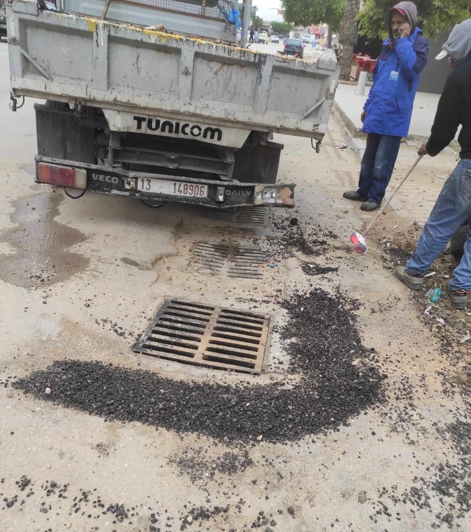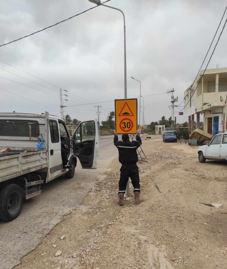 -جهر نشعية (خندق) بالطريق الوطنية رقم 1 بولاية قابس وإزالة الحجارة المتساقطة على جانبي الطريق الجهوية 107 وإعادة العلامات العمودية التي سقطت بفعل الرياح.