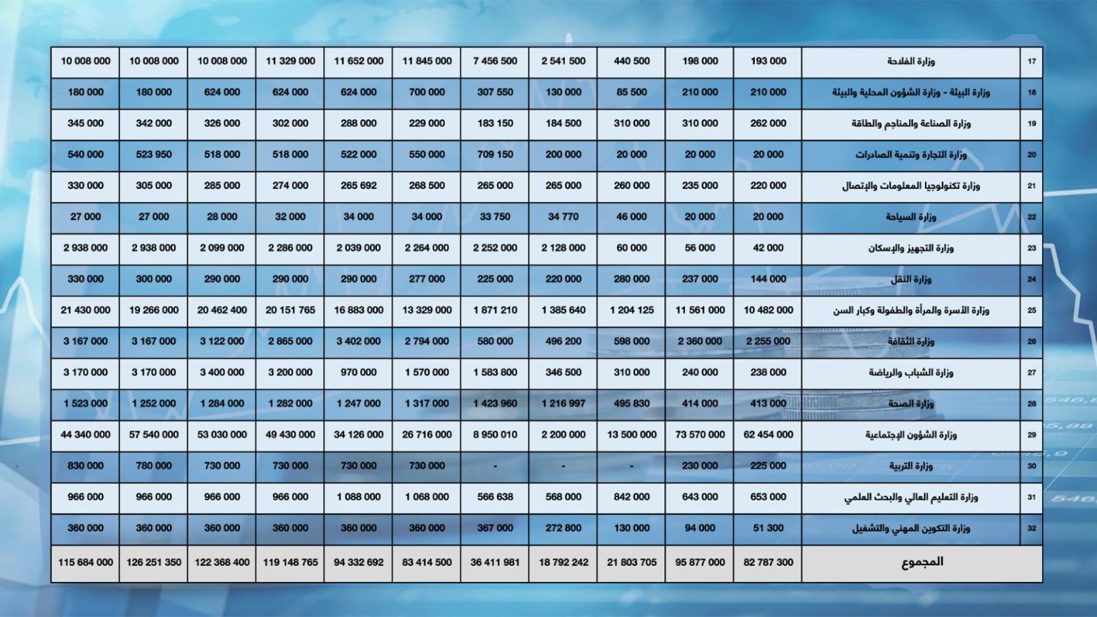 كما قامت وزارة الفلاحة بإسناد مبالغ ناهزت 80 مليون دينار خلال الفترة المعنية تليها وزارات الداخلية والمالية والعدل.