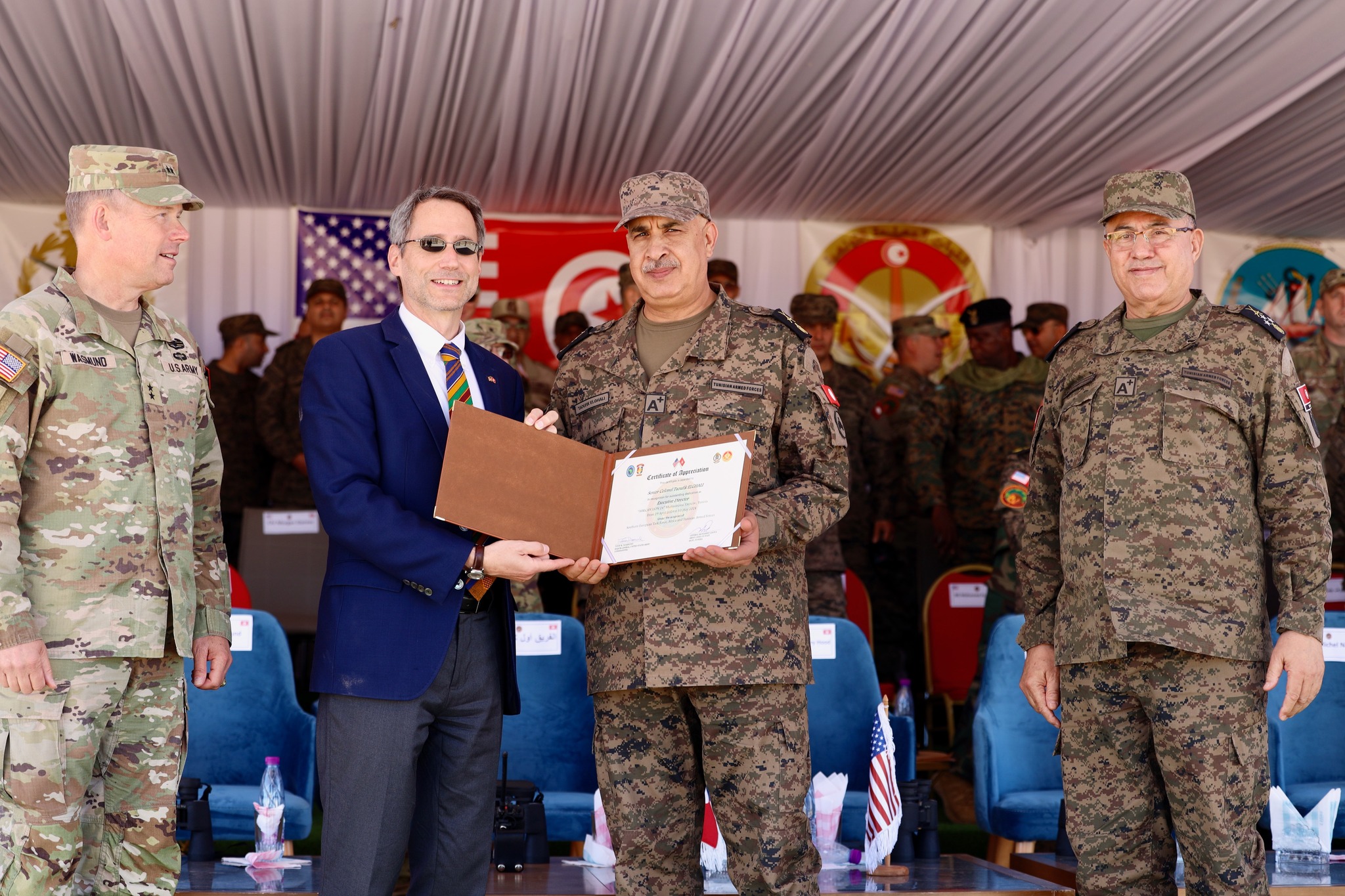 شارك سفير الولايات المتحدة الأمريكية جوي هود مع كبار القادة العسكريين من الولايات المتحدة وتونس وعدد من الدول الإفريقية الأخرى في إختتام فعاليات التمرين العسكري المشترك الأسد الإفريقي AfricanLion24 .