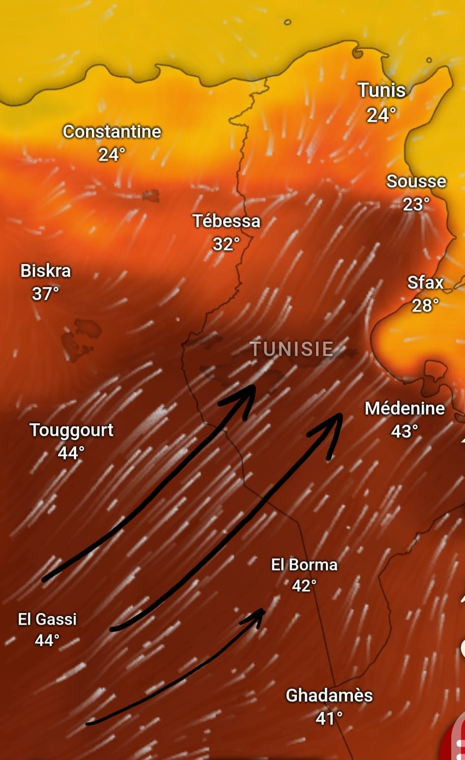 يتميز الطقس هذا اليوم بكونه شديد الحرارة، حيث انه سيتم تسجيل ما بين 40 و 45 درجة في الظل مع هبوب رياح الشهيلي .