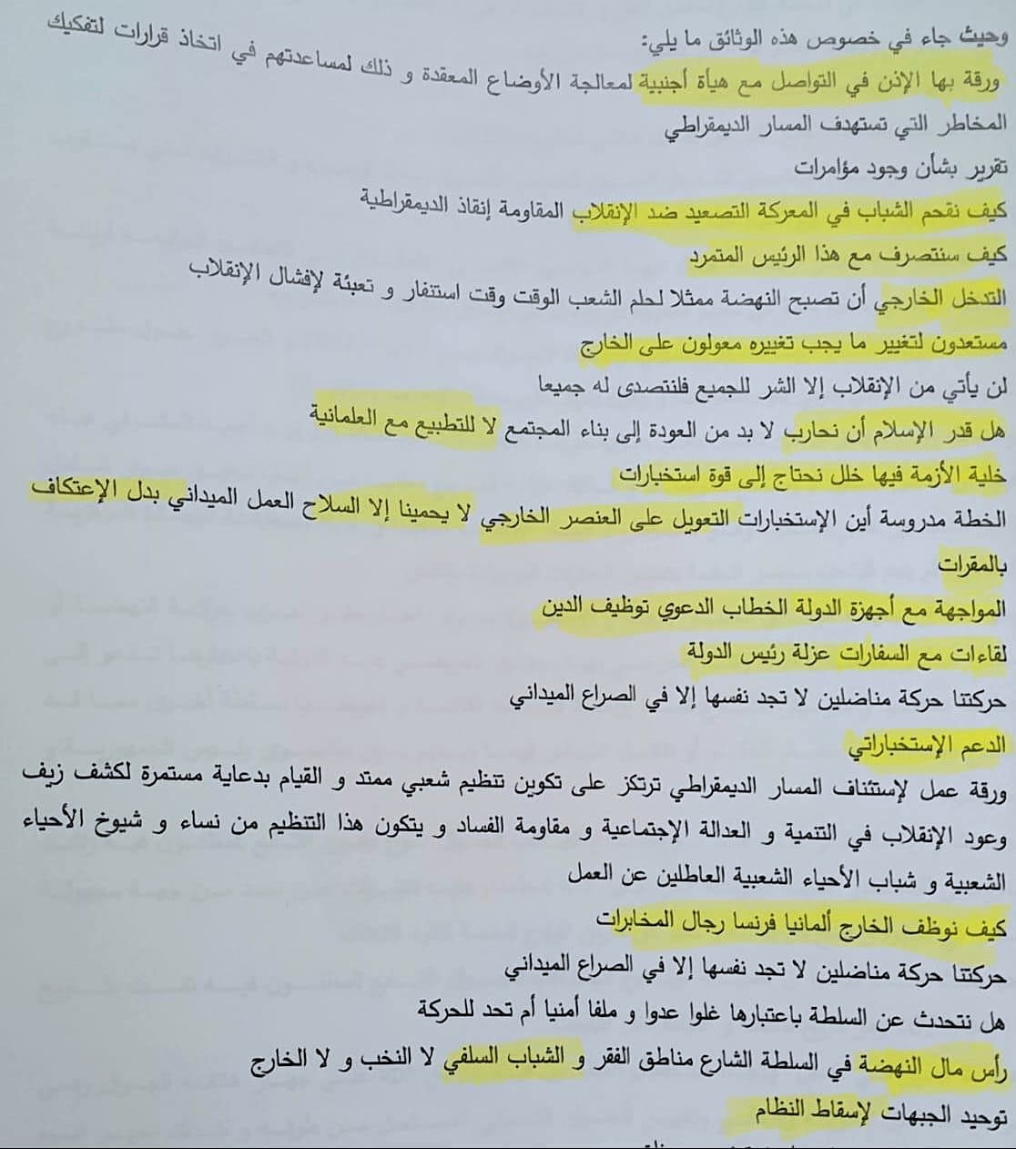 وكما تداول رواد موقع التواصل الإجتماعي وثائق و مخطّطات أخرى خطيرة جدا تمّ العثور عليها في المقر المركزي لحركة النهضة تزامنا مع إيقاف رئيس حركة النهضة راشد الغنوشي يوم 17 أفريل 2023.