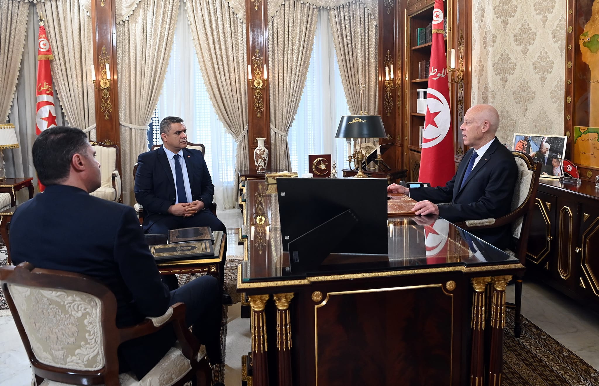 استقبل رئيس الجمهورية قيس سعيد، ظهر هذا اليوم الاربعاء 31 جويلية 2024 بقصر قرطاج، خالد النوري، وزير الداخلية، وسفيان بالصادق، كاتب الدولة لدى وزير الداخلية المكلف بالأمن الوطني.