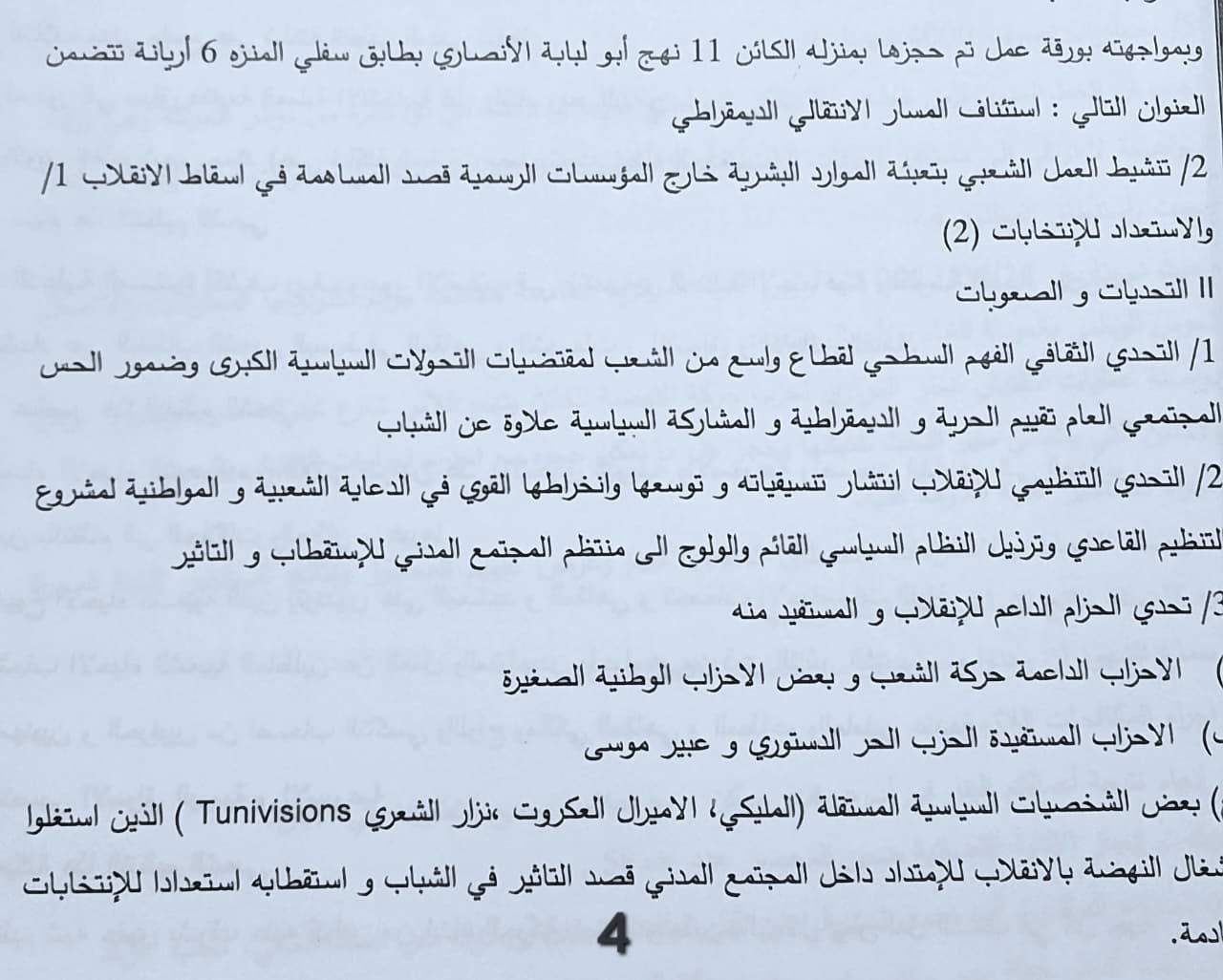 التخطيط لإستقطاب أحزاب سياسية (حركة الشعب، الحزب الدستوري الحر) و شخصيات سياسية (عبير موسي، نزار الشعري، الأميرال العكروت، حاتم المليكي..).