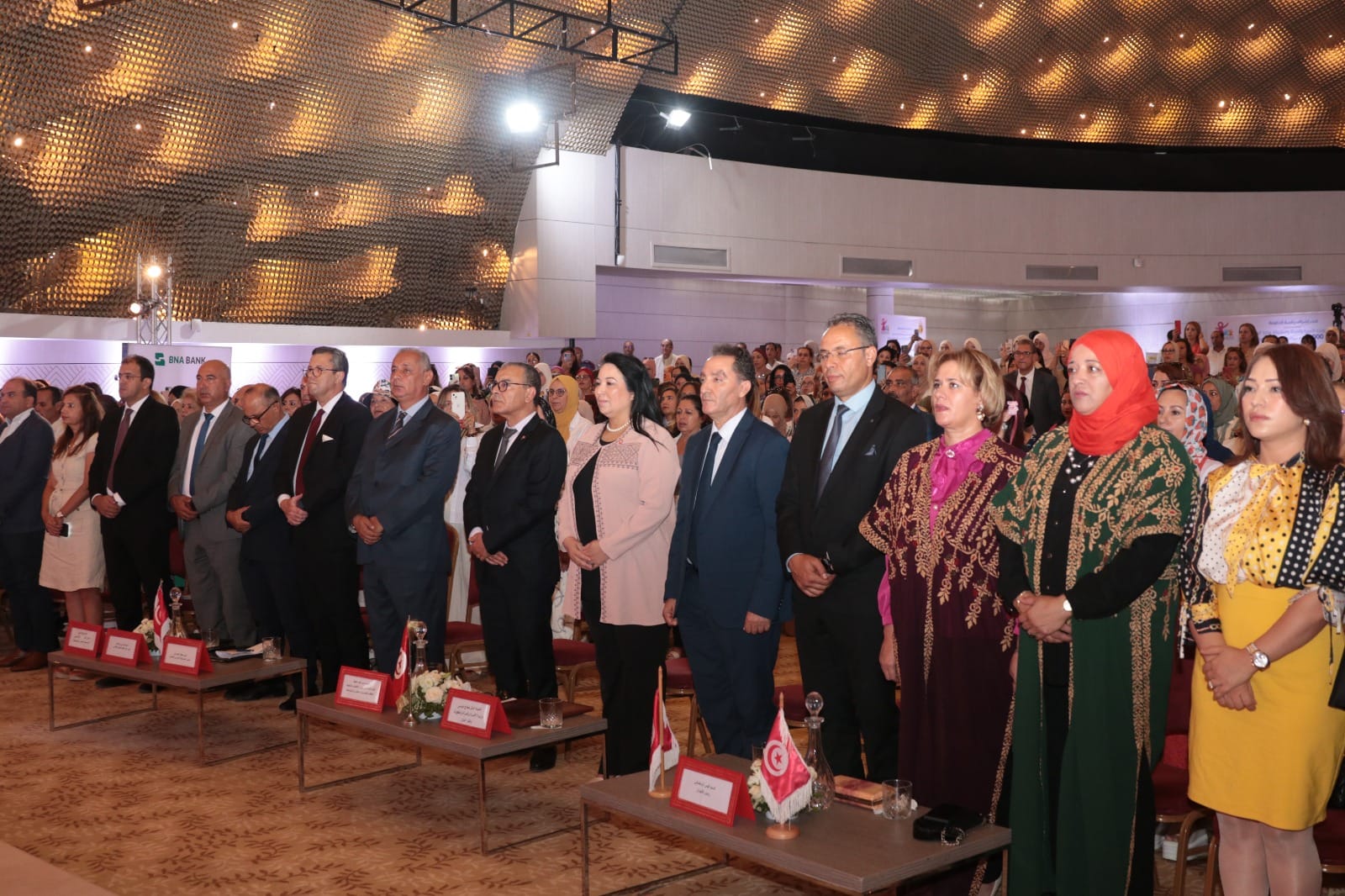 وشهد الموكب، الذي انتظم بمناسبة الذكرى الثامنة والستين للعيد الوطني للمرأة التونسية، مشاركة عدد من أعضاء مجلس نواب الشعب والمجلس الوطني للجهات والأقاليم ورئيسي ديواني وزارتي الأسرة والتكوين والتشغيل وممثلي البنك التونسي للتضامن والبنك الوطني الفلاحي وبنك تمويل المؤسسات الصغرى والمتوسطة، وممثلي الهياكل الحكوميّة ورائدات وسيّدات الأعمال التونسيّات من مختلف جهات الجمهوريّة.