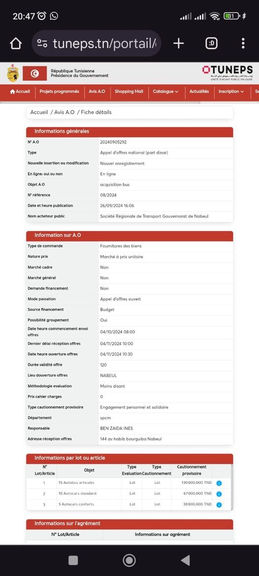 نشرت مؤخراً الشركة الجهوية للنقل بنابل إعلان طلب عروض لاقتناء 30 حافلة جديدة، وهذا ما ورد في نص الإعلان: