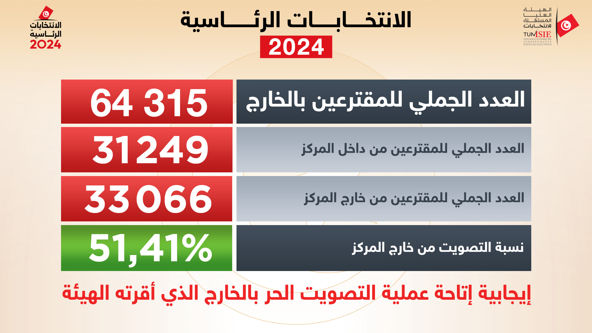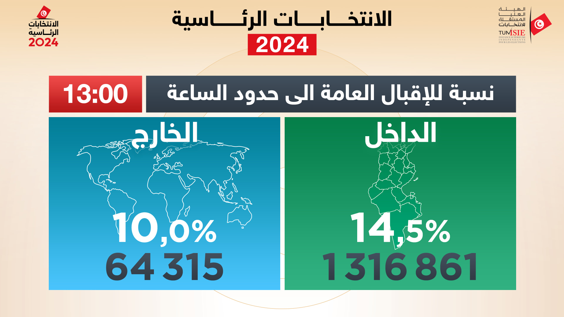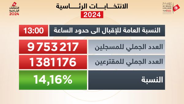 آخر معطيات حول سير عملية الاقتراع للانتخابات الرئاسية التونسية، معطيات حول سير عملية الاقتراع للانتخابات الرئاسية إلى حدود الساعة 13:00:
