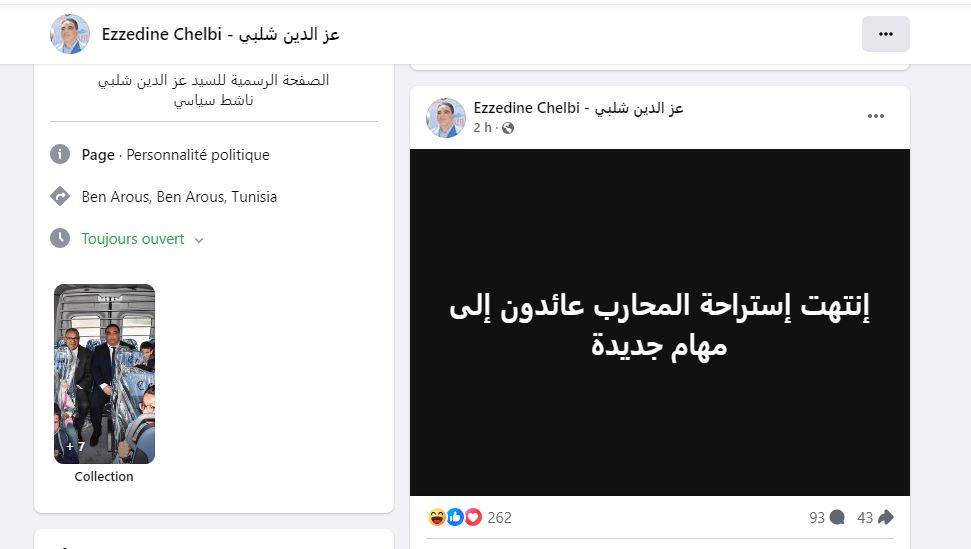 ونشر شلبي تدوينة عبر حسابه بالفايسبوك: إنتهت إستراحة المحارب عائدون إلى مهام جديدة.