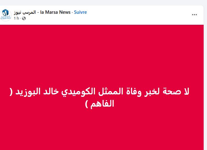 تداولت عدد من صفحات موقع التواصل الإجتماعي الفايسبوك اشاعة عصفت بحياة الفاهم، ومن جانبه، نفى مصدر لموقعنا ما يقع ترويجه ، وقال مصدرنا: كنت الآن في اتصال هاتفي مع أخي خالد بوزيد وهو في صحة جيدة.