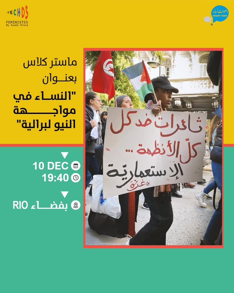 ماستر كلاس لتبادل الأفكار حول النسوية والفن كوسيلة للمقاومة ضد الأنظمة الاستعمارية والأبوية، واستكشاف دور الفن في دعم الحركات النسوية.