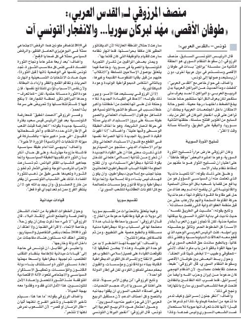 في تصريح خطير أطلقه الرئيس الأسبق للجمهورية المنصف المرزوقي في حوار مع جريدة القدس العربي يوم الاثنين،قال أن تونس في حاجة إلى قيادات ميدانية للإطاحة بنظام الرئيس قيس سعيد، وإلى إعادة الدستور القديم، وأضاف المرزوقي: بالقول بأن عودة الثورة مسألة حتمية،لكن وحدها البراكين تقرر لحظة انفجارها، حسب قوله.
