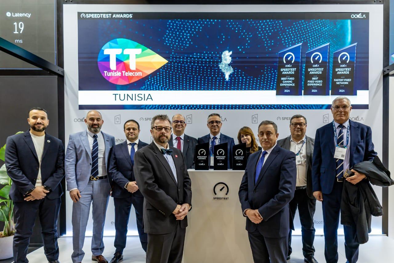 Barcelone le 5 Mars 2025- En marge de sa participation au World Mobile Congres 2025, l’opérateur national Tunisie Telecom annonce avoir été reconnu comme l’opérateur disposant de la meilleure vitesse de connexion, de la meilleure expérience vidéo et de la meilleure expérience en gaming sur les connexions fixes en Tunisie au cours des troisième et quatrième trimestres de 2024 par le leader mondial de l’analyse des réseaux à haut débit Ookla.