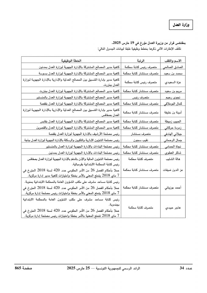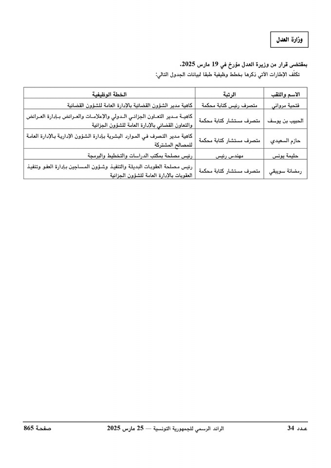 بمقتضى قرار من وزيرة العدل مؤرخ في 19 مارس 2025.
