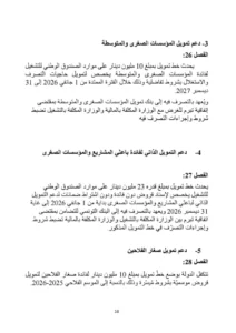 جاء في محور دعم التمويل الذاتي لفائدة باعثي المشاريع والمؤسسات الصغرى في الفصل 27 من مشروع قانون المالية لسنة 2026 ، يحدث خط تمويل بمبلغ قدره 23 مليون دينار على موارد الصندوق الوطني للتشغيل يخصص لاسناد قروض دون فائدة ودون اشتراط ضمانات لدعم التمويل الذاتي لباعثي المشاريع والمؤسسات الصغرى بداية من 1 جانفي 2026.