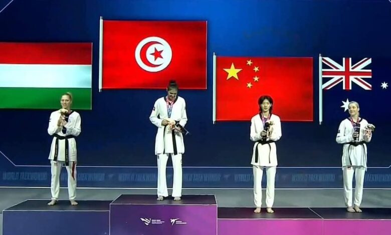 في أول مشاركة عالمية في الكبريات، تُوّجت البطلة العالمية وفاء المسغوني، البالغة من العمر 17 سنة، اليوم الأربعاء 29 أكتوبر 2025، بطلة للعالم في وزن -62 كغ، بعد فوزها في نهائي بطولة العالم للتايكواندو بالصين على البطلة الأولمبية المجرية المصنفة الأولى عالميا MARTON Viviana، بنتيجة جولتين لصفر (7:7/0:0)، لتمنح بذلك تونس ذهبا عالميا جديدا في هذه البطولة.