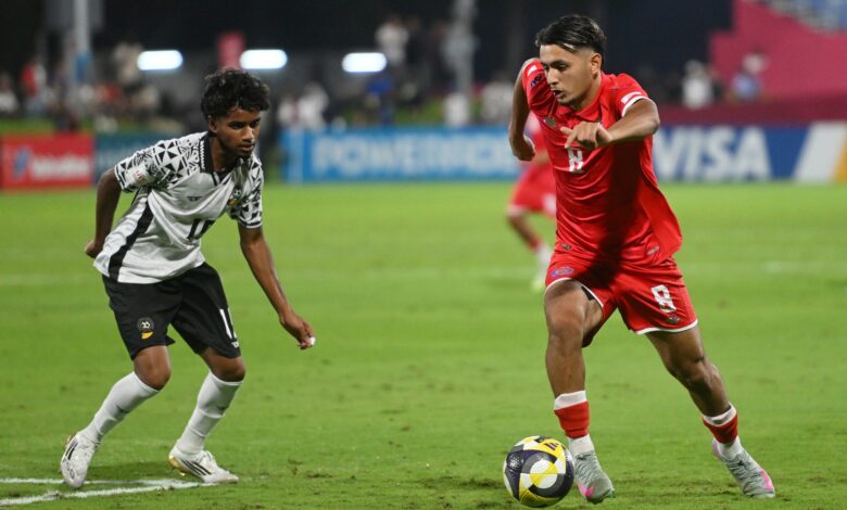 DOHA, QATAR - NOVEMBER 03: Saifedin Haj Abdallah of Tunisia runs with the ball during the FIFA Under-17 World Cup match between Tunisia and Fiji at Aspire Academy on November 03, 2025 in Doha, Qatar. (Photo by Jurij Kodrun - FIFA/FIFA via Getty Images)