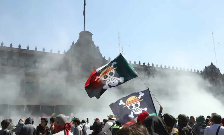 وقال شهود من رويترز إن مجموعة صغيرة من المتظاهرين الذين يرتدون القبعات أسقطت حواجز حول القصر الوطني في مكسيكو سيتي حيث تقيم الرئيسة كلاوديا شينبوم، مما أدى إلى اندلاع اشتباك مع شرطة مكافحة الشغب التي استخدمت الغاز المسيل للدموع.