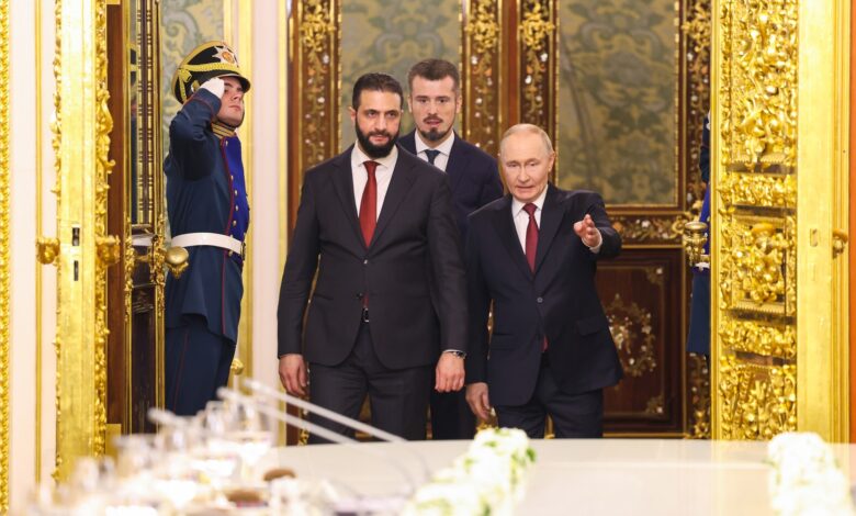 وفي منتصف أكتوبر، أجرى الرئيس السوري الانتقالي أحمد الشرع أول زيارة إلى موسكو، وعقد مباحثات مع الرئيس الروسي فلاديمير بوتين.