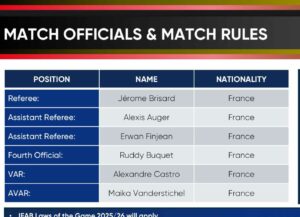 يخوض المنتخب الوطني التونسي اليوم الثلاثاء 18 نوفمبر 2025 مباراة ودية أمام نظيره البرازيلي على ملعب ليل في فرنسا بإدارة تحكيم فرنسي وفي مايلي تركيبة طاقم التحكيم: