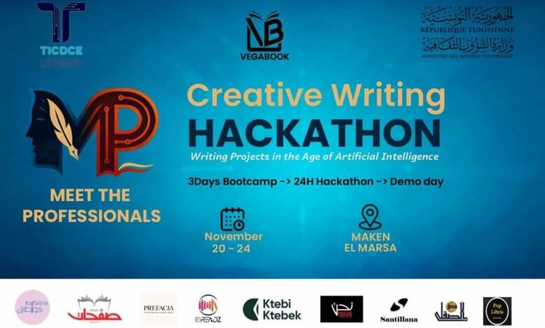 وتنتظم هذه الحلقات التدريبية التكوينية بمقر قطب الإبداع والفنون الرقمية “مكان” بالمرسى، الذي يحتضن أيضاً نهائيات هاكاثون “Meet the Professionals” حول مشاريع الكتابة في عصر الذكاء الاصطناعي في اليوم الرابع عبر 24 ساعة عمل متواصل دون انقطاع لإنجاز مشروع سردي متكامل يُعرض أمام لجنة تحكيم متخصصة من عالم الثقافة والتقنية.