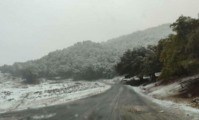 تساقطت فجر اليوم وهذا الصباح كميات من الثلج في عين دراهم وفي مرتفعات غار الدماء ( الغرة، عين سلطان، الفائجة).
