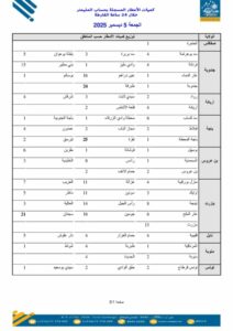 نشر المعهد الوطني للرصد الجوي قائمة لكميات الأمطار المسجلة بحساب المليمتر خلال الـ 24 ساعة الفارطة من الساعة 07 صباحا ليوم الخميس 04 ديسمبر إلى الساعة 07 صباحا ليوم الجمعة 05 ديسمبر 2025.