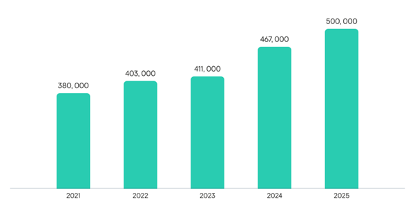 متوسط عدد البرمجيات الخبيثة التي ترصدها حلول كاسبرسكي الأمنية يوميًا بين 2021 و2025