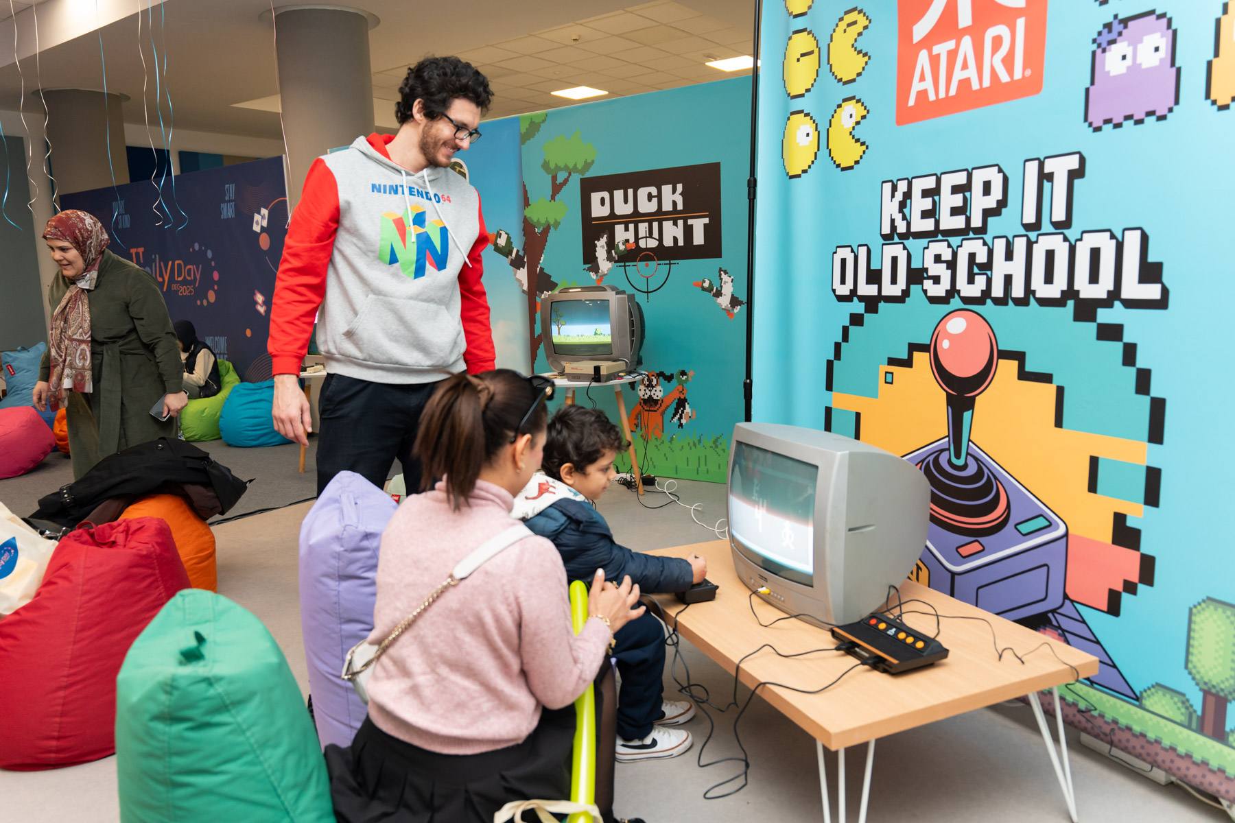 La journée a été rythmée par un programme varié mêlant innovation, créativité et divertissement. Un espace de rétro-gaming a rassemblé plusieurs consoles emblématiques des années 90 et 2000 — Nintendo, Wii, PlayStation 1 et Atari — offrant aux enfants une expérience originale et aux parents un agréable retour en enfance, propice aux échanges intergénérationnels.