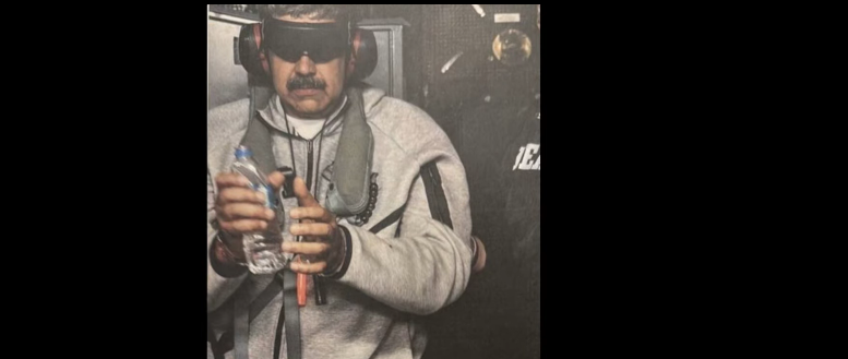 نشر الرئيس الأميركي دونالد ترامب، السبت، صورة تظهر الرئيس الفنزويلي نيكولاس مادورو مكبل اليدين ومعصوب العينين، وهو على متن سفينة أمريكية بعد اعتقاله وزوجته في عملية عسكرية.