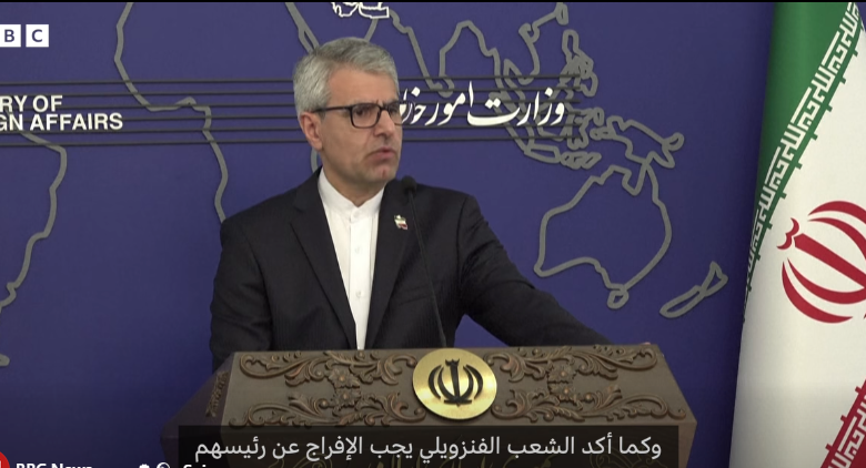 وقال المتحدث الإيراني: يجب الإفراج عن رئيس فنزويلا. وقد عبّرت دول كثيرة عن مواقفها في هذا الشأن، كما أن الأمين العام للأمم المتحدة يتحمّل مسؤولية صون ميثاق المنظمة. إن غياب ردّ واضح وصريح سيجرّ المجتمع الدولي بأسره إلى تداعيات خطيرة.