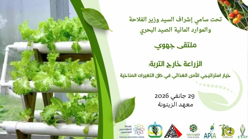 La ville de Sfax accueillera, le mercredi 29 janvier 2026, les travaux du forum régional intitulé « L’agriculture hors sol : une option stratégique pour la sécurité alimentaire face aux changements climatiques ». L’événement se tiendra à l’Institut Ezzitouna de Sfax à partir de 9 heures du matin, à l’initiative de l’Ordre des Ingénieurs Tunisiens – section de Sfax.