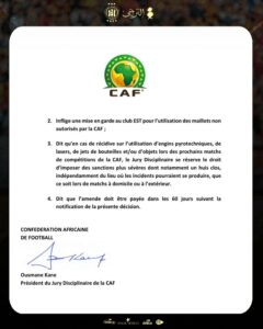 – تجدون رفقة هذا البلاغ نص القرار الذي اتخذته لجنة التأديب التابعة للكنفدرالية الإفريقية لكرة القدم.