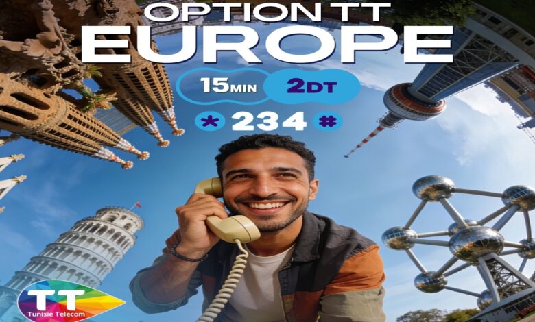 تواصل شركة إتصالات تونس تطوير جملة من الخدمات لفائدة حرفاءها ولمختلف الشرائح العمرية والفئات المجتمعية، وتقدم باقات مختلفة ومتنوعة من العروض الجديدة والتخفيضات الهامة، وهذه المرة أطلقت شركة اتصالات تونس عرض جديدة حيث يمكن من خلال الــ option FIXE Europe لشركة إتصالات تونس TT، مخاطبة الــfixe في الــ Europe، ويكون سعر الربع ساعة ما قيمته 2 دينارات.