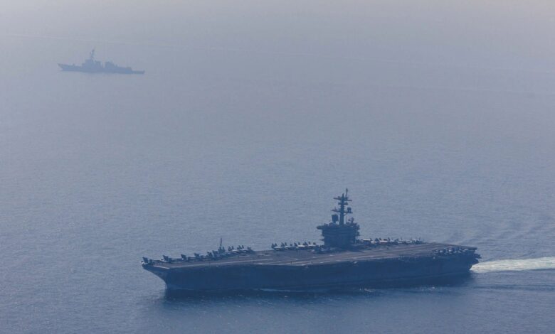 الآن ننقل لكم مشاهد للقوة الضاربة الأمريكية في بحر العرب، والمدعومة بقدرات جوية متطورة للغاية، تأتي في إطار التحركات المرتبطة بالملف الإيراني، ما يعكس مستوى عالياً من الجاهزية والاستعداد لتنفيذ مهام عسكرية معقدة عند الحاجة.
