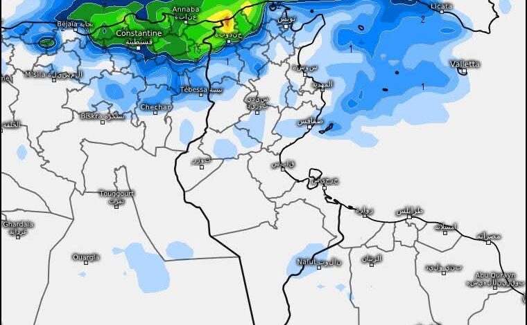 حيث قد تتراوح الكميات بين 15 و20 مم محليًا، بينما تبقى ببقية الجهات ضعيفة إلى متوسطة في حدود 5 مم أو أقل.