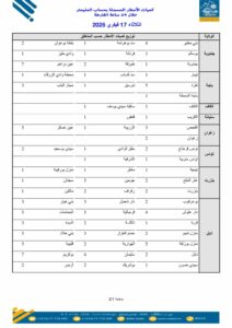 نشر المعهد الوطني للرصد الجوي قائمة لكميات الأمطار المسجلة من يوم الاثنين 16 فيفري 2026 على الساعة 07 صباحا إلى يوم الثلاثاء 17 فيفري 2026 على الساعة 07 صباحا: