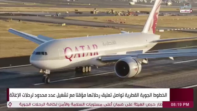 الخطوط الجوية القطرية تواصل تعليق رحلاتها مؤقتا مع تشغيل عدد محدود لرحلات الإغاثة.