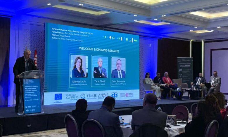 ركزت الندوة على دور التجمعات العنقودية في تحفيز الابتكار وتعزيز سلاسل القيمة الإقليمية، وذلك في إطار مشروع Euromed Clusters Forward، الممول جزئيًا من الاتحاد الأوروبي.