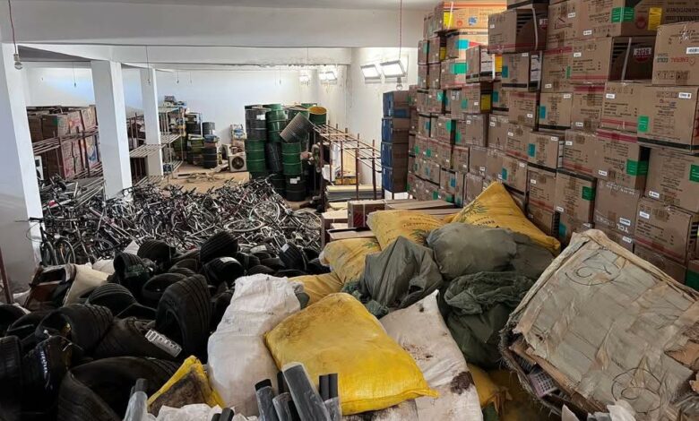 وأضاف الجهاز أن المضبوطات تمثلت في ملابس وأحذية وشاشات تلفزيونية ودراجات هوائية ومواد غذائية وسجائر ومكسرات بمختلف أنواعها.