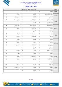 نشر المعهد الوطني للرصد الجوي في بلاغ على صفحته الرسمية على فيسبوك قائمة لكميات الأمطار المسجلة خلال الـ24 ساعة الماضية بمختلف مناطق البلاد وهي على النحو التالي: