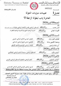 قررت الرابطة الوطنية لكرة القدم المحترفة اليوم الثلاثاء 8 أفريل 2026 تغيير مواعيد بعض مقابلات الجولة العاشرة إياب من بطولة الرابطة الأولى, وفي مايلي البرنامج الكامل: